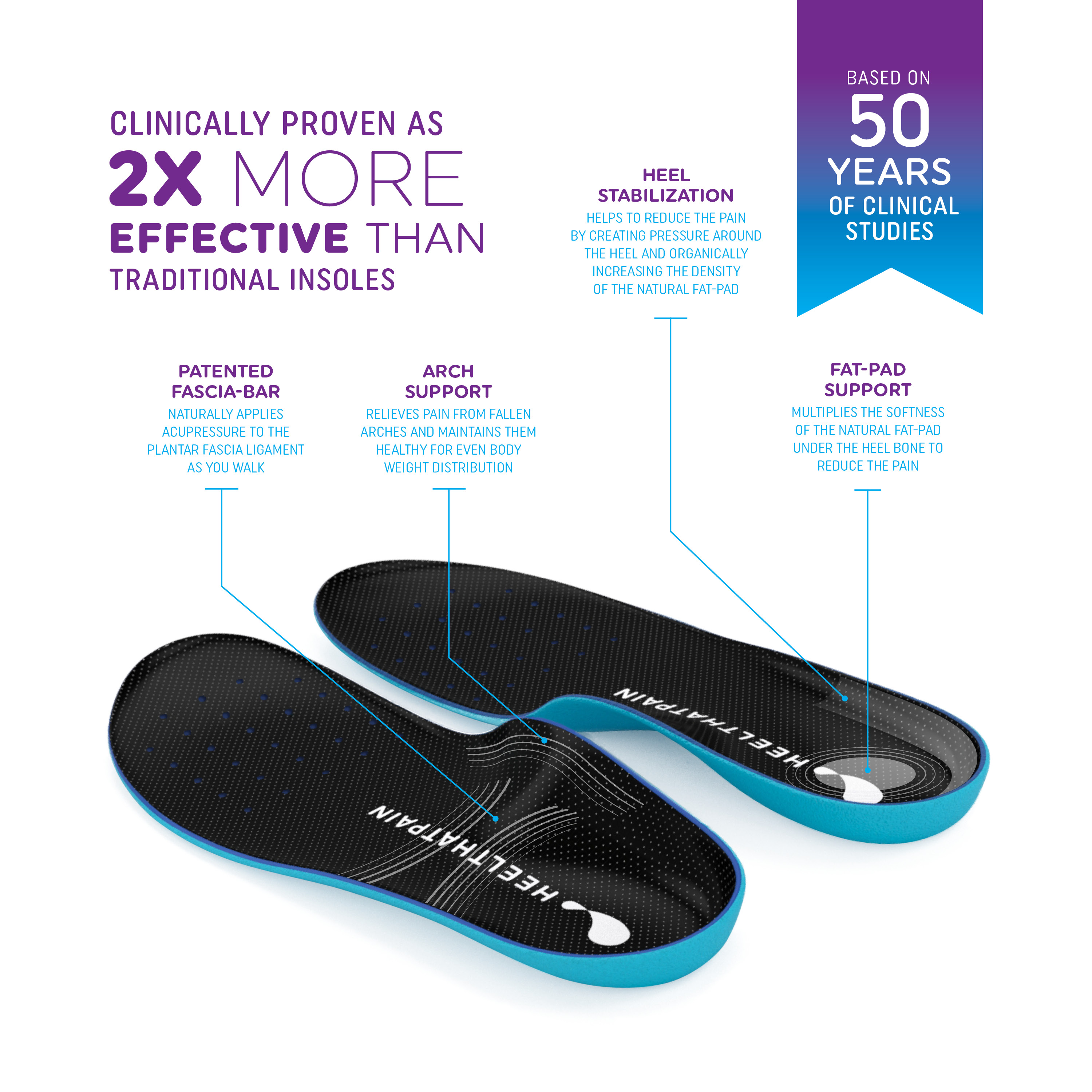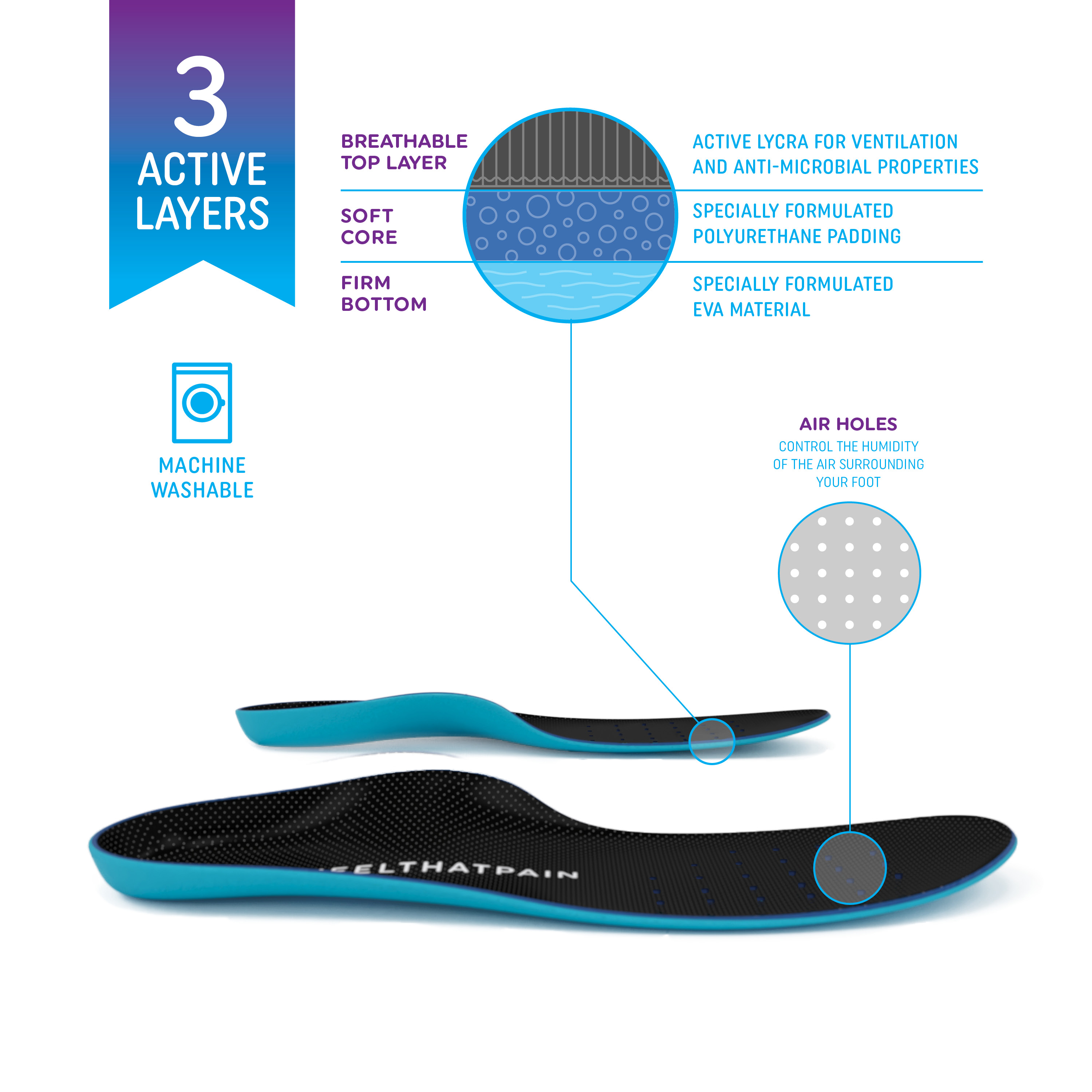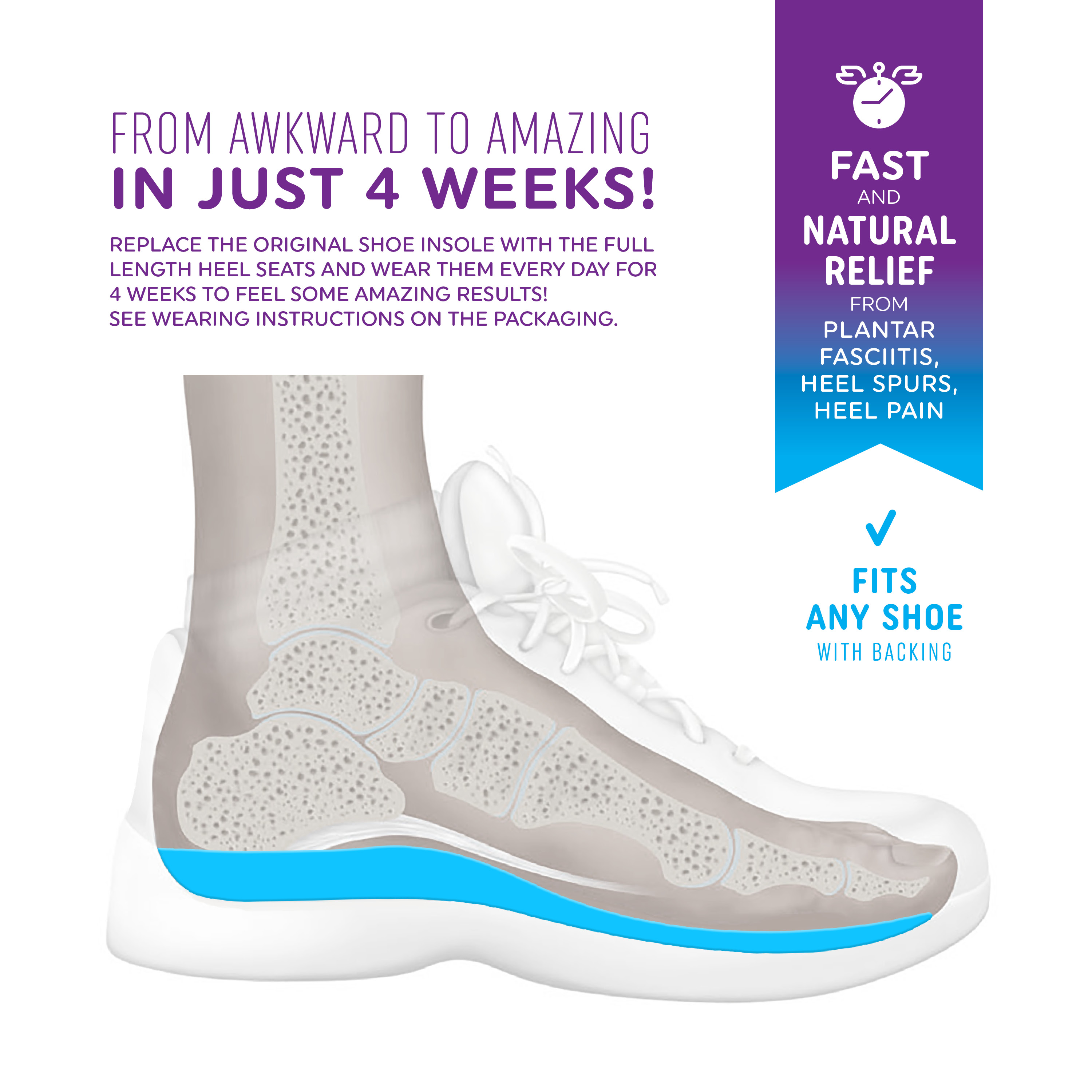 If you have high, flat, or unstable arches, your feet are less effective at absorbing and distributing impact–and more likely to develop plantar fasciitis! Get the extra support and cushioning you need with High Arch Sole Seats: