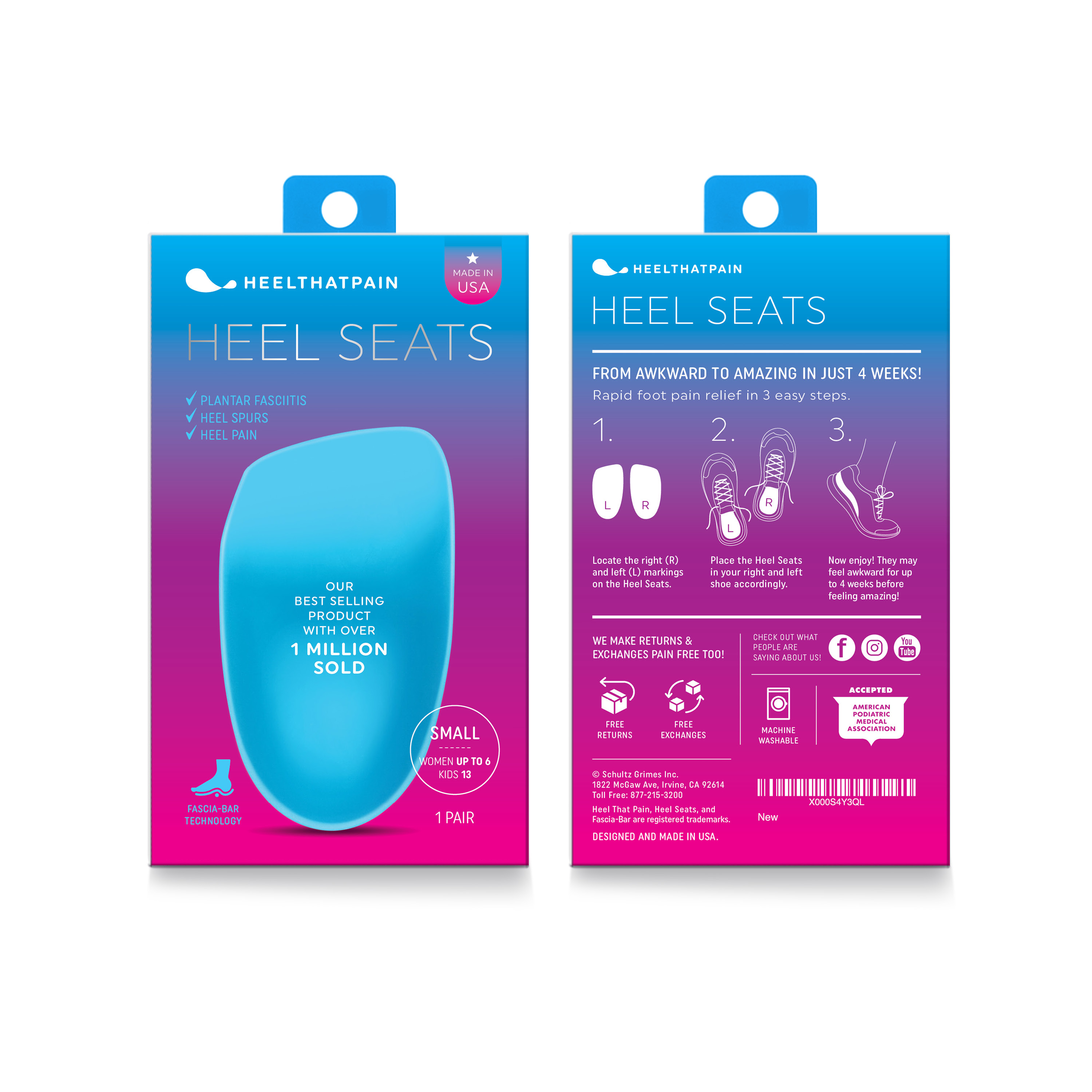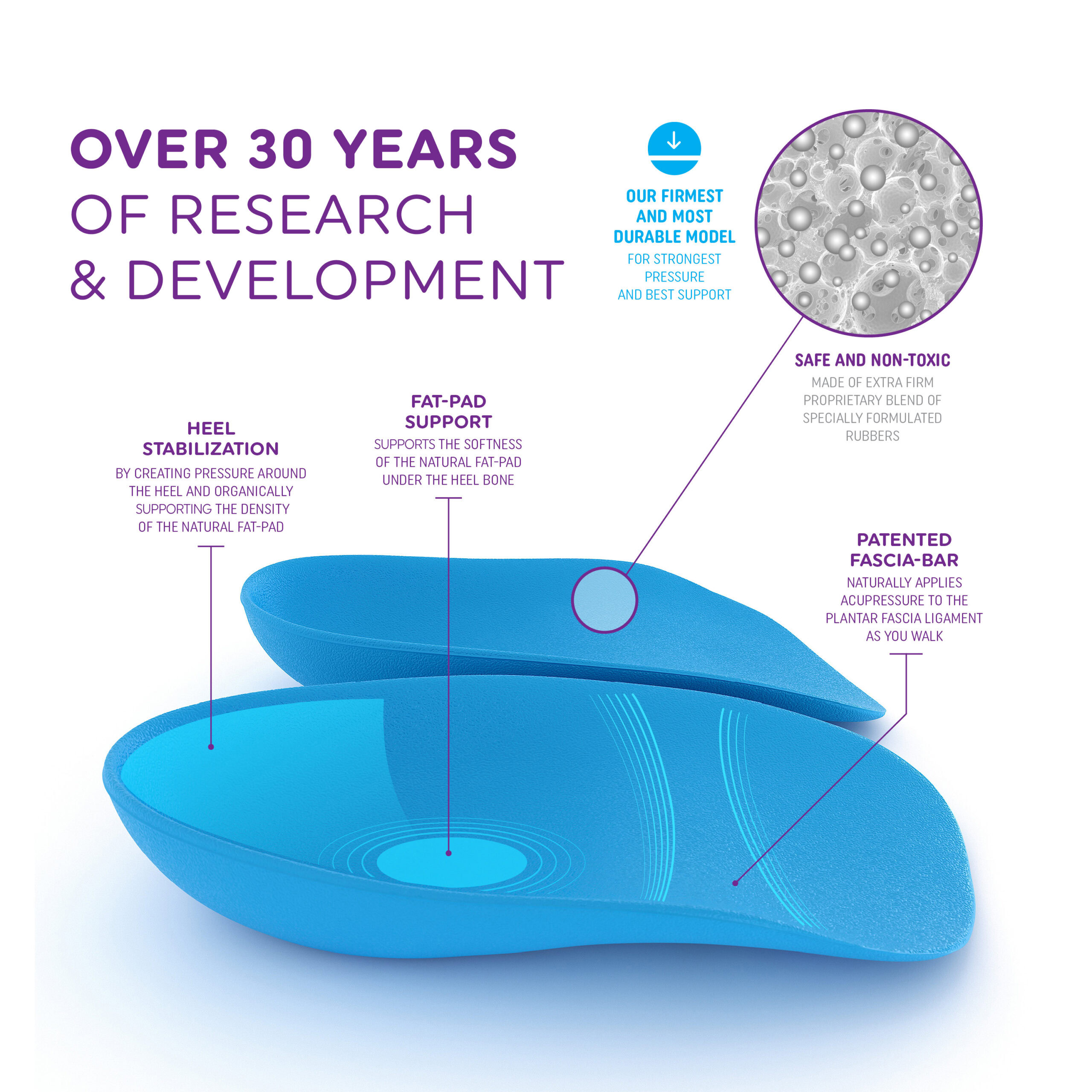 Whether you prefer our firmer Original Heel Seats, softer Gel Heel Seats, or the new Hybrid Heel Seats, you can feel confident knowing that every pair of Heel Seats we make includes our patented Fascia-Bar Technology — which makes them twice as effective as leading orthotic brands!